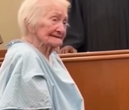 She’s 91 years old and in a hospital gown. She was arrested for felony theft, and the judge couldn’t believe what he was seeing.