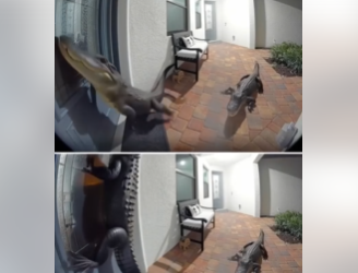 Captured on a Ring doorbell camera, the bizarre footage shows a pair of massive alligators making their way up a quiet family’s front porch. At first, it looks like a scene from a wildlife documentary.