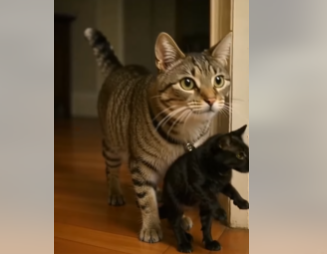 The mystery was explained the next morning when a police officer arrived with our neighbor, Mrs. Miller. They told us a stray dog nearby had recently given birth but was no longer there to care for her puppies. Marsa must have found them alone in the night and carried them one by one to safety. At first, Mrs. Miller was concerned about leaving the pups with a cat, but when she saw how gently Marsa licked their faces and kept them warm, her fears quickly faded. With reassurance from the officer, she agreed to let Marsa continue caring for them.