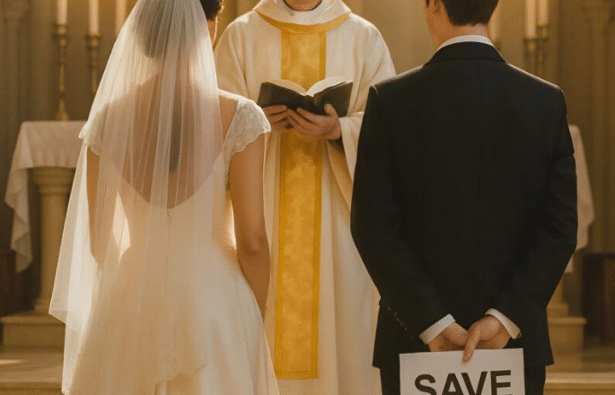 During the wedding in the church, my groom, as a joke, held up a sign behind his back that said “Save me”: I was deeply hurt and decided to teach him a lesson