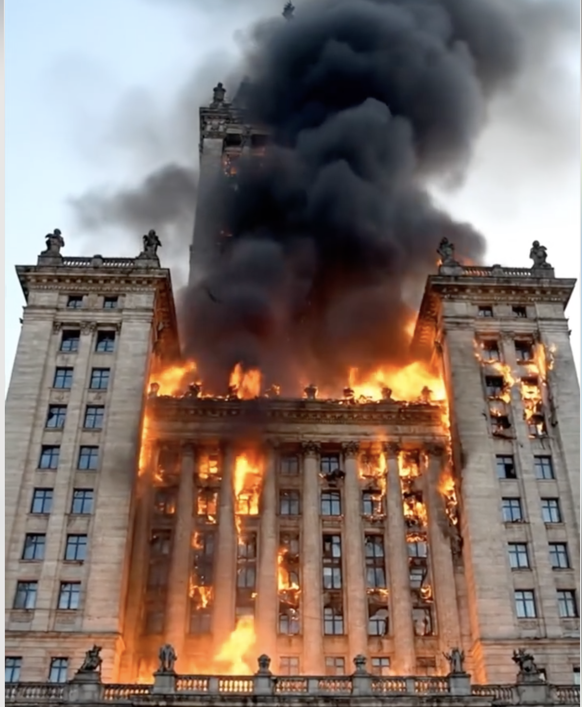 Imagine this: you’re standing in the heart of Warsaw, looking up at the towering Palace of Culture and Science, and suddenly the unthinkable happens — flames burst through its windows,