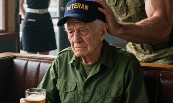The slap cracked across his cheek. His cap tumbled to the floor, coffee spilling across the table. A waitress gasped; a mother shielded her child’s eyes. The biker chuckled darkly. “Should’ve stayed gone, soldier.”