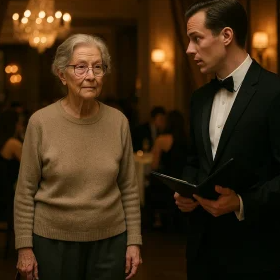 Eliza stepped through the door wearing a timeworn wool sweater, a long gray skirt, and a pair of well-used orthopedic shoes. Her hair was neatly pinned, her eyes sharp behind wire-rimmed glasses. She stood at the entrance quietly, unnoticed at first—until the maître d’ turned.
