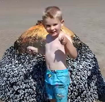 During their beach outing, the family was more interested in the barnacles on the object than its true nature.