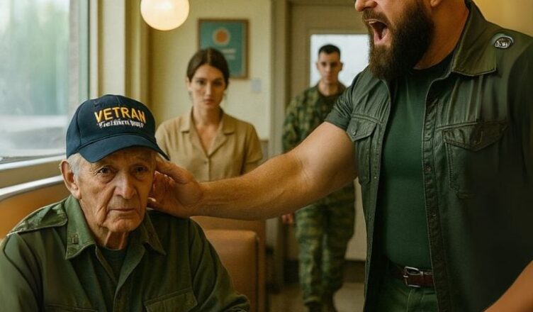 The biker sneered. And then came the crack. His hand lashed out, striking the veteran’s cheek. The man’s cap tumbled to the floor, coffee splattering across the table.