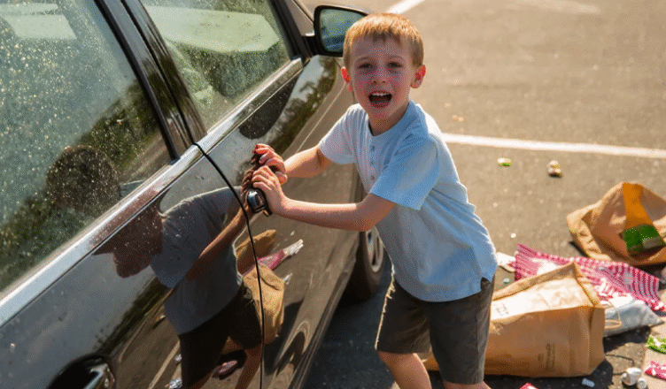 I slowed my steps, not sure at first if what I was seeing was real. A little boy, no more than four or five, stood barefoot on the burning ground. His feet must have been stinging from the heat, yet he didn’t seem to notice. His whole focus was on the car in front of him. He pounded on the door with a rhythm that was desperate, almost frantic.