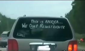 After being uploaded online, a phrase scrawled on the rear of an SUV swiftly gained popularity.