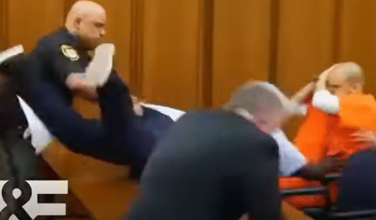 Terry then paused and turned to look behind him at Madison, who was sitting behind the defense table, before running towards the convicted killer and lunging over the table at him.