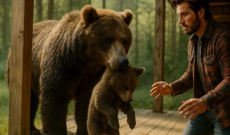I stepped outside and saw a huge bear standing on the porch, holding a cub in its jaws: As I stared at them in shock, the mother bear gently set the cub down on the ground — and then did something completely unexpected