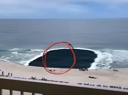 spot with no waves is likely a rip current, a dangerous natural phenomenon that can appear randomly along the coast.