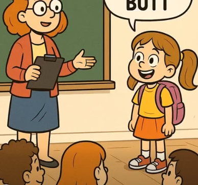 So the little girl marched to the office, cheerful as ever. The principal looked up and asked kindly, “What’s your name?” Without hesitation, she said again, “Happy Butt.”