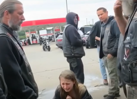 Bikers Surrounded The Crying Girl At The Gas Station And Everyone Called 911