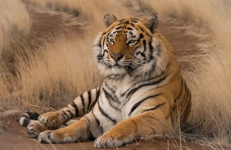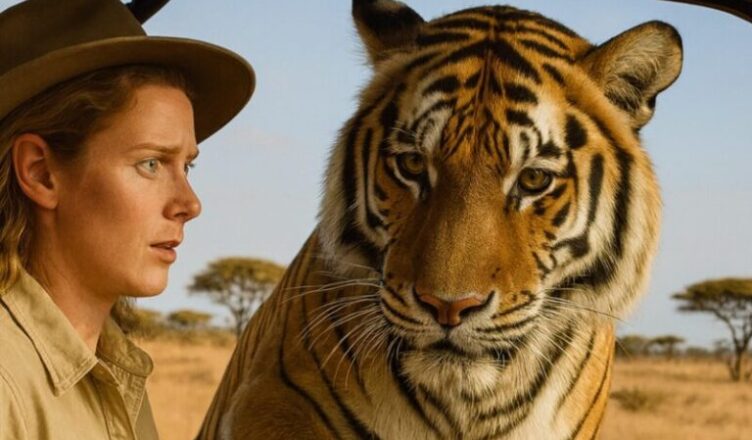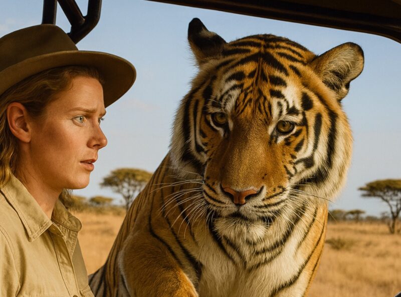 The enormous tiger was so close that she could feel its warm breath on her face. The animal stared straight into her eyes — attentively, almost studying her. She sat completely still, afraid to provoke the predator with even the slightest movement.