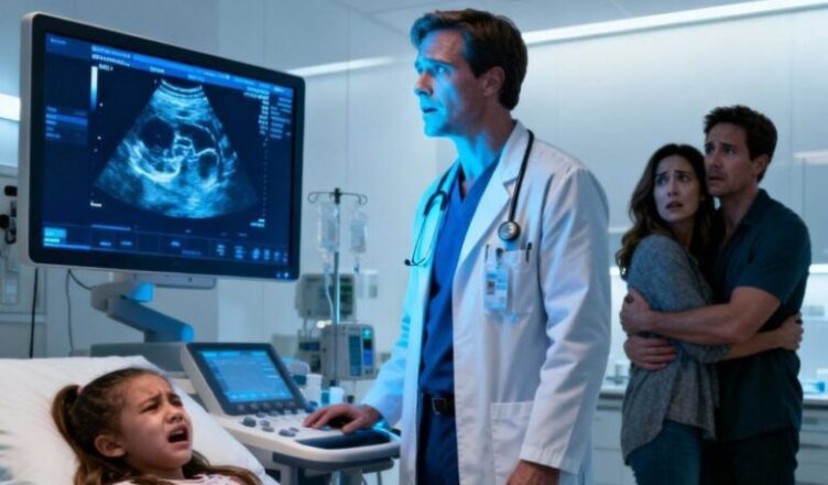 The parents immediately took the child to the hospital to see the best doctor. Seeing the child’s extremely serious condition, the doctors placed her in the examination room and began performing an ultrasound.