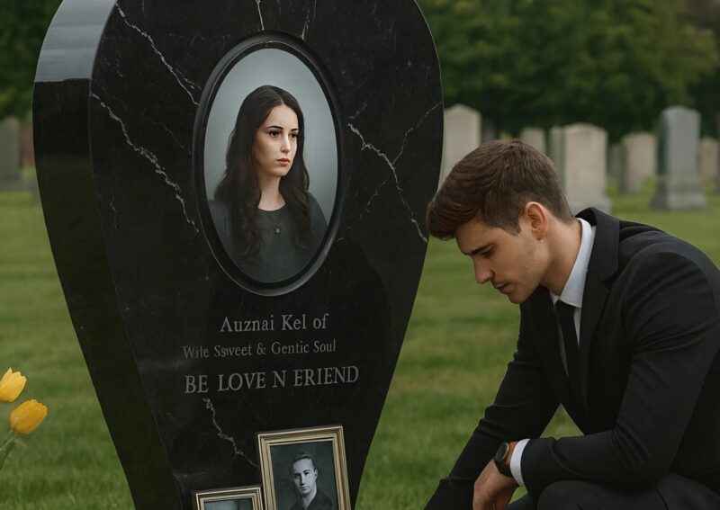 Only now did he really see the headstone. Large, black, heart-shaped, with her photograph. Flowers, frames — everything looked neat, as if someone visited often. He stepped closer. Knelt down to place the flowers, and at that moment noticed something strange 😱😨 Continued in the first comment 👇👇