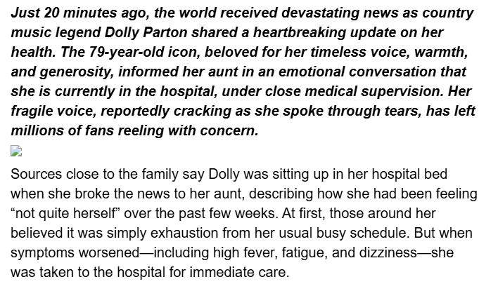 “🖤 SAD NEWS: 30 Minutes Ago, We Received Shocking Information That Dolly Parton’s Family Was Involved in a Serious Accident While Leaving a Christmas Charity Event — Doctors Confirm Their C December 18, 2025admin Post Views: 112