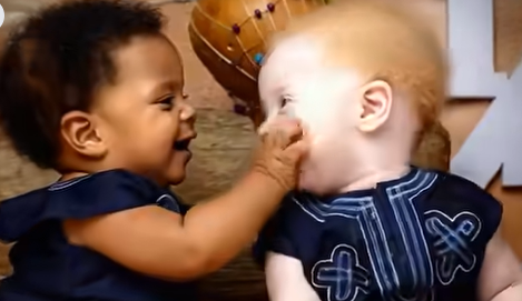 Both of Stacy and Babajide’s children, who are black and live in Lagos, are albinos. The cute twins are always the center of attention wherever they go due to their drastically different looks. While Daniel resembles his 5-year-old elder sister Demilade and has dark skin and black curly hair, David is beautifully white with pale skin and golden hair.