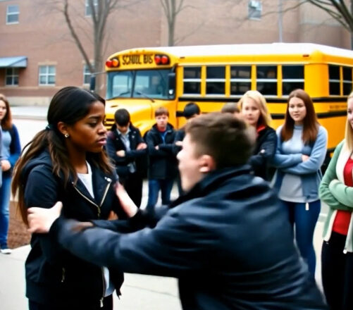 Suddenly, the hum of the cafeteria was interrupted by the arrival of a group of students who hadn’t been there moments before. They were older, and their presence commanded respect. Jordan’s older brother, Xavier, led them, his expression unreadable but his eyes protective and fierce.