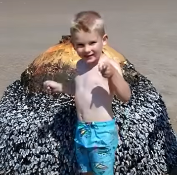 During their beach outing, the family was more interested in the barnacles on the object than its true nature.