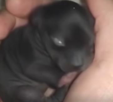 The pup had gently carried the tiny creature in its mouth and brought her to safety.