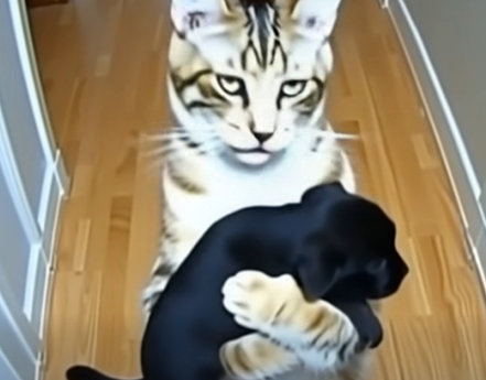 After my cat brought home puppies from who knows where, a policeman knocked on the