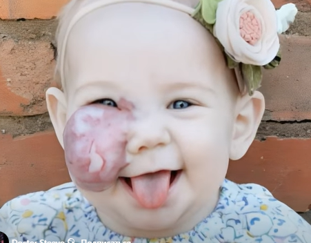 When Emilia was born, the first thing everyone noticed was her extraordinary eyes — a blue so pure it seemed to hold the sky inside them. But the room fell silent the moment the doctor leaned closer, his expression changing. Laura, exhausted yet radiant from childbirth, waited to hear her baby’s first cry, but what she heard instead was a heavy pause. The doctor finally said in a hushed voice, “There’s something on her cheek… a large growth.”