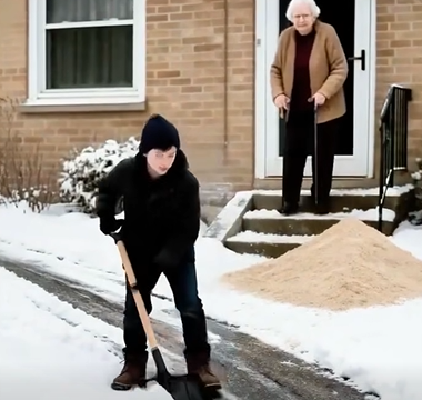 “You gave me more than a clear driveway, dear,” she says. “You gave me hope. You reminded an old woman that the world still has good people in it. That young people still care. That kindness hasn’t gone extinct.”