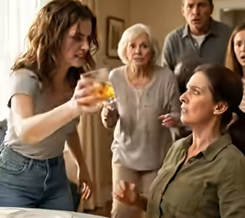 It shattered against my cheekbone with a sound I’ll never forget—sharp, final, like the structural beam of a house snapping under too much weight. A warm, wet heat instantly bloomed across my skin, streaking down to stain my mother’s pristine white tablecloth. Around the dining table, twenty pairs of eyes froze. The silence that followed wasn’t empty; it was heavy, suffocating, sucking the air out of the room.