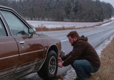 The car looked like it had survived a dozen winters too many. Beside it stood an elderly couple, wrapped in thin jackets that the wind sliced right through.