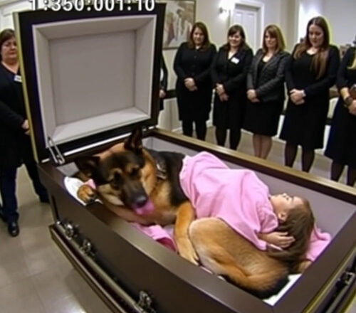 A German Shepherd refused to leave a little girl’s coffin—what happened next stunned everyone. The funeral