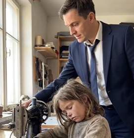 Instead, he stood there watching a child sew with crooked stitches, as if every thread were holding their world together.