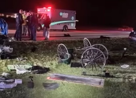 What began as a calm evening in the peaceful Amish community of Berne, Indiana, turned unexpectedly somber when a Jeep collided with a horse-drawn buggy along State Road 218. Around 11:20 p.m., emergency crews arrived to find broken wood and scattered belongings under flashing red lights. The buggy, carrying a local Amish family of nine, had been struck from behind. Witnesses said the impact was unlike anything their quiet town had seen in years, leaving hearts heavy with concern and disbelief.