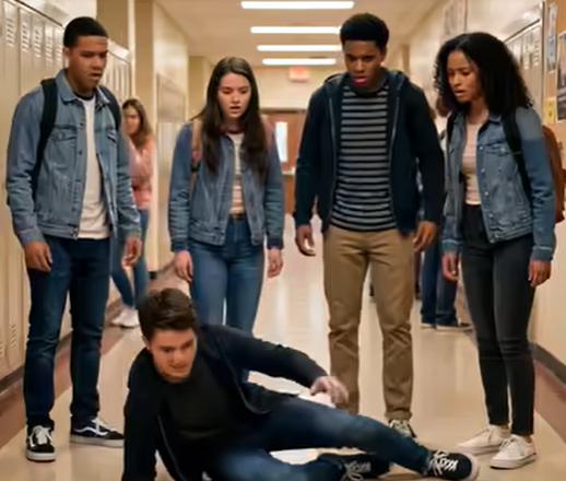 He was navigating the main staircase, heading to third-period biology, clutching the railing with a white-knuckled grip. That’s when Carter and his group of varsity athletes blocked the landing. Carter was seventeen, a state-ranked swimmer with a smile that never quite reached his eyes—the kind of kid who used his popularity as a blunt instrument.