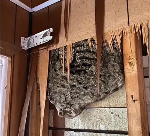 Behind the broken drywall was a massive, sprawling wasp nest. Not a small cluster hidden in an attic corner, not a modest hive — a monstrous colony, clinging to every stud from floor to ceiling.