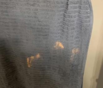 But benzoyl peroxide wasn’t the only thing causing these mysterious orange marks. Another common cause I uncovered was high iron content in the water. This is especially true for households with well water or older plumbing systems that use iron pipes. Over time, the iron in the water can leave behind rust-like deposits on fabrics. These deposits don’t bleach the fabric but instead leave reddish-orange, rusty spots that often worsen with repeated washing. Unlike the large, uneven bleached patches caused by benzoyl peroxide, iron deposits usually show up as smaller, scattered dots. In addition to that, certain hair care products, self-tanners, and even some tinted shampoos can transfer pigments onto towels and clothes, pigments that only become visible once the fabric dries.