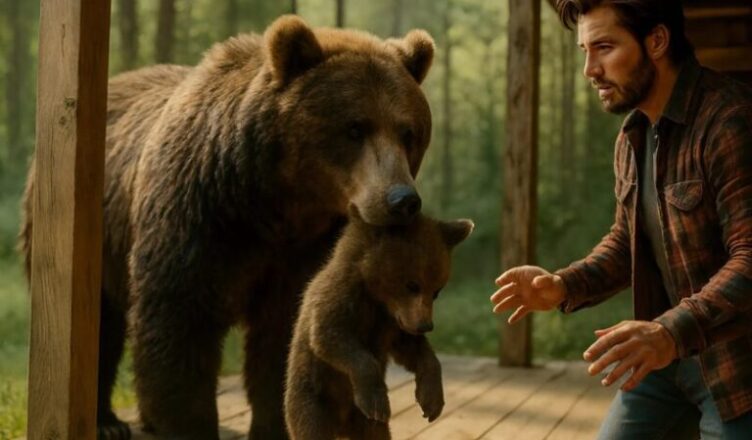 I stepped outside and saw a huge bear standing on the porch, holding a cub in its jaws: As I stared at them in shock, the mother bear gently set the cub down on the ground — and then did something completely unexpected 😨😱