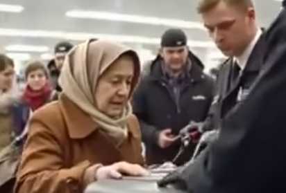 During the baggage inspection of an elderly woman, the security officer noticed something strange on