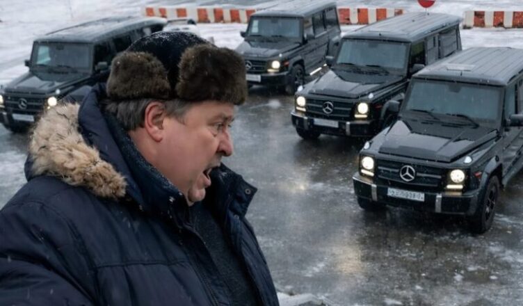 Sixteen black luxury cars were lined up in perfect order. Security guards in black suits stood nearby, carefully watching the surroundings.