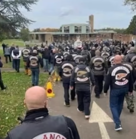 The next morning, the rumble of motorcycles filled the cemetery. Dozens of bikers—men and women with weathered faces and vests adorned with memorial pins—formed a solemn guard outside the chapel. When the four boys arrived with their parents, their smug confidence vanished. Sam stepped forward, his voice steady: “These boys can pay their respects. But today is about Mikey—a child who deserved better.” The bullies sat rigidly through the service, flanked by bikers who never spoke a threat but made their presence undeniable.