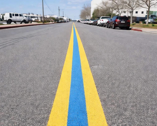 A unique road marking is beginning to appear in select areas across the United States, catching the attention of drivers and community members alike. This new design features a thin blue line painted between the standard yellow center lines on certain roads.