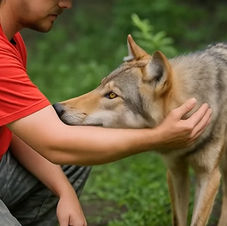John knelt down slowly. He took a piece of dried meat from his backpack — his last one — and gently placed it a few inches away. The she-wolf, cautious, sniffed and then ate. Slowly, silently.