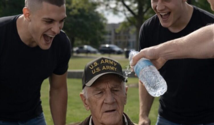 One of the boys unscrewed the cap of a plastic bottle and suddenly poured all the water directly over the old man’s head. The water ran down his cap and jacket, while the second boy started laughing loudly and filming everything with his phone.