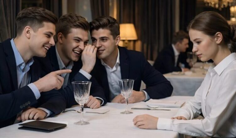 They laughed, whispered, and threw glances at her. They deliberately ordered the most expensive dishes and discussed the prices out loud. One leaned toward another and said loudly on purpose: