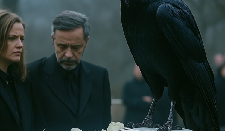 As sadness engaged their hearts, a large black crow suddenly appeared and landed on Emily’s coffin. The bird, a deep blackness, stared at the crowd with its blue-violet eyes, a strange shade reminiscent of the little departed.