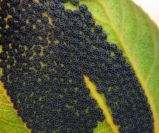 Recently, I came across a photo making the rounds online — a leaf covered in intricate black clusters, arranged in neat rings or zigzags. At first glance, it looked alien. Eerie. Like something out of a sci-fi movie.