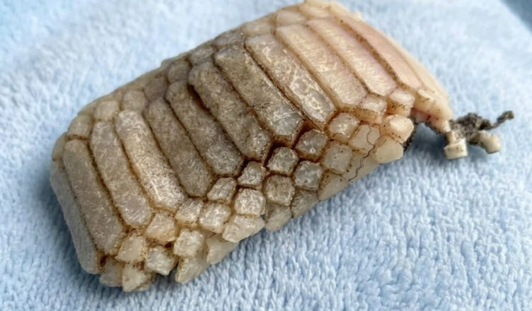 What so many feared was never a monster at all, but the hidden side of an ordinary ocean resident: the underside of a chiton, a humble marine mollusk clinging quietly to rocks in the surf. Seen from above, it wears a modest suit of eight overlapping plates, like a tiny armored shield. Flip it over, and the illusion shatters—its muscular foot and gripping structures suddenly resemble rows of teeth or mechanical parts.