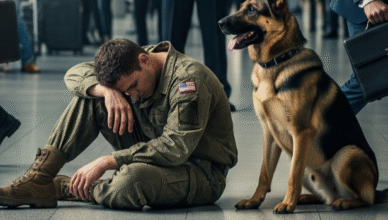 People At The Airport Saw A Soldier Lying On The Floor — Then His Dog Barked At Anyone Who Got Close