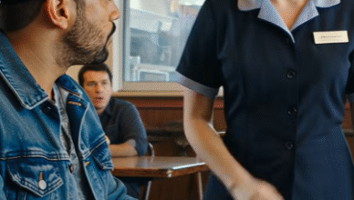 Daniel crosses the threshold, and immediately, the restaurant’s chatter feels distant. Every step toward the back room — where Jenna stacks plates and