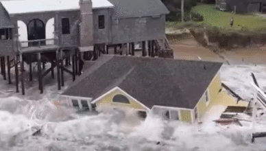 Buxton, NC — The destructive force of Hurricane Imelda left a shocking mark on North Carolina’s Outer Banks this Tuesday, as five unoccupied homes collapsed into the ocean within the